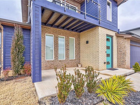 This contemporary Avodah floor plan built by Jeff Click is in the perfect LOCATION of Silverhawk in Edmond. Access to the turnpike and Portland gets you anywhere, FAST. Walking distance to elementary school? Check! The details are what matters from the steel cable railing, to the 9 foot ceilings in the open living space, three covered patios, walk in pantry, mud room bench, and Pex Manifold System. You will love each fixture that is sleek and modern, including the upgraded chandelier right at the front door. There is an exterior door from garage and a raised garden in the back yard. This 3 bed 3 bath two story home has a sprinkler system, wine fridge and Thermador gas cooktop! With new exterior paint, this property certainly stands out! Once you step inside, you won't want to leave; you will want it to be yours.