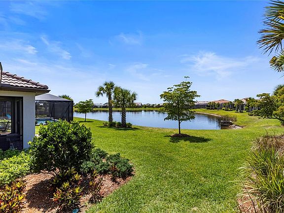 You're going to want to hurry to see this beautiful 2 1/2 year old Summerwood home in Del Webb (a 55+ active community) in the top selling multi-generational community of Lakewood Ranch. No need to endure the current painstaking process of new construction. This one has all you need. Wood-look tile is throughout this home - NO CARPET. The extended lanai looks out onto one of many ponds throughout the community. The sellers are going to miss the sights and sounds of nature that can be enjoyed from the large screened in lanai with a brand new outdoor kitchen that comes complete with grill, fridge and sink. Bring the outdoors in when you use the pocket sliders from the great room and enjoy the perfect indoor/outdoor entertainment space. And inside, you'll find that must-have open concept floor plan with the kitchen you've always wanted, with white cabinets, contrasting granite counters and marble subway and decorative tile backsplash and upgraded stainless appliances. Large corner pantry and that large island with composite sink is of course where you can pictures family and friends gathering. You will love the custom barn door and built-ins in the den/office and the plantation window shutters. The master has double sinks and a large walk in closet - plenty of room for his and hers. And your guests can enjoy their bedroom located at the front of the home that opens next to the second bath. A generously sized laundry room gives you that extra space you need to place folded laundry instead of on top of the washer itself. Completing the offerings in this lovely home is a 2 car tandem garage. That means you have an expanded space in the garage to use for a golf cart, storage (for northerners missing the coveted basement) or that workshop for craftsman buyers. This is fabulous home in a community that has something for everyone. The clubhouse and onsite restaurant are set in a picturesque setting overlooking the largest lake in the community. The grounds in this community are just lovely. With a full-time activities director, resort-like pool and amenities, and a plethora of clubs and group activities you will be living the luxurious lifestyle you want and deserve.