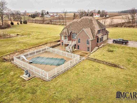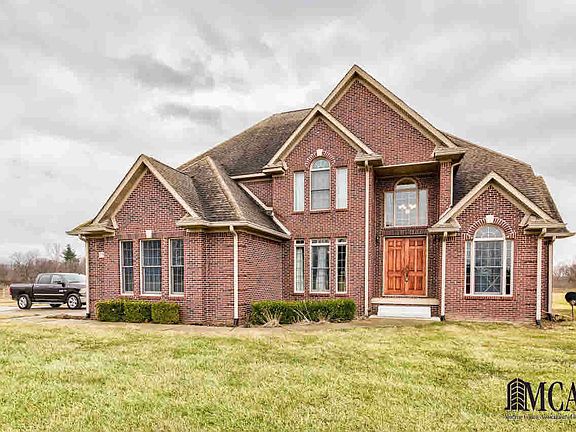Absolutely Gorgeous Brick 34000 sq ft Tudor Home on 10 Acres in Dundee with a 48'x30' pole barn and in-ground pool. Enter this custom home through grand french double doors into a 2-story foyer. 2-story windows and ceiling continue into the living room with an open staircase and custom built-in library. Formal dining room. Living room has cathedral ceilings with exquisite details such as wood ceiling beams, lots of windows for natural light, and views overlooking backyard and pool. Gourmet chef kitchen with built-in oven and microwave, separate cooktop, and upgraded 42 inch kitchen cabinetry. Kitchen opens to an oversized breakfast room with beautiful country views. Main floor master suite includes vaulted ceilings, spa-like ensuite with deep jetted tub and separate shower, and a 12'x9' walk-in closet. Upstairs has 3 more bedrooms and a full bath. Partially finished walkout basement. Geothermal heat and AC. 3 miles to US23. 1 year Home Warranty.