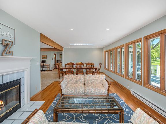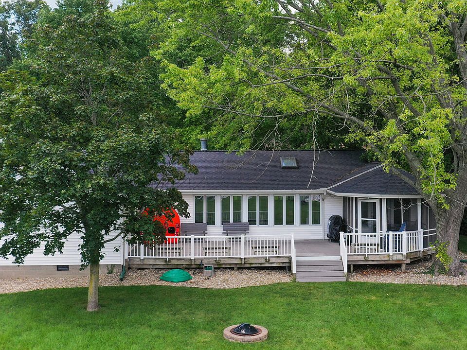 This charming four-bedroom, two-bath, 1,970-square-foot home on a quarter-acre lot on the north side of Donnell Lake has expansive lake views, a grassy level lawn with mature shade trees, and plenty of room for entertainment. The waterfront has a new seawall and a storage shed. Inside are a main living area with a fireplace and lake views; a second living area with access to an octagonal screened porch with exposed beams and panoramic views; a tiled dining/kitchen area with bar seating, a trash compactor, stainless appliances, and two skylights; a large bedroom with deck access; two other bedrooms; a bath with large tiled shower; another bath; and a laundry. The house has fresh paint throughout and wood floors. The property includes a vacant backlot large enough for a garage or pole barn.