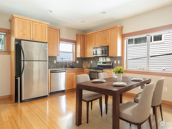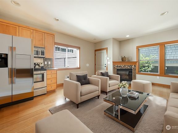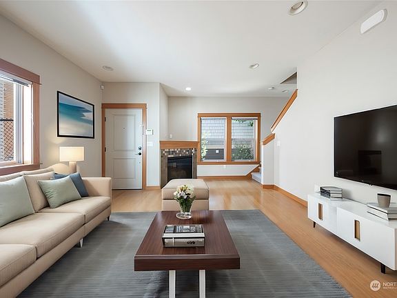 Craftsman style townhome located in this quiet and convenient top of the hill North Beacon neighborhood. Easy walk to local shopping, restaurants, schools and light rail station. Open concept main level living with bamboo flooring, tiled fireplace and convenient powder room. Spacious lower level suite or media room with tiled 3/4 bathroom. Upper floor Primary suite with Elliot Bay views and private access to full tiled bath. Guest bedroom with walk in closet and access to full bath. Upper floor laundry area. Nice fenced courtyard easily accessed off main floor for outdoor entertaining. Private parking space off alley.