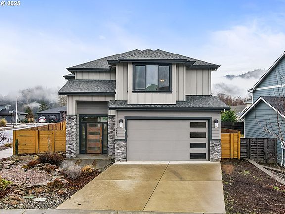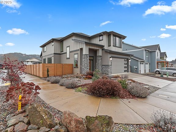 Gorgeous contemporary 2018-built home on corner lot in sought after Hood River neighborhood! Within minutes of local shopping, schools, the Indian Creek Trail, and all the amenities of Hood River and The Gorge. Tons of natural light and high ceilings greet visitors into the large open living space. Enjoy a Mt. Hood view and territorial vistas from several of the rooms. Gourmet kitchen is perfect for entertaining with quartz counters, large island with plenty of storage, and spacious pantry. Beautiful engineered hardwood floors with radiant heating via the on demand tankless water heater. Excellent bonus room on the main level, perfect for office, den, or additional living space. Forward-thinking design with hookups for water, shower, and laundry in extra deep garage workspace area meant to allow future conversion of bonus room into potential separate living/mother-in-law space. Large primary suite with walk-in closet, double vanity, soaking tub, and walk-in shower. Convenient upper level laundry room with sink and built-ins. Extra deep garage with plenty of storage space, 240v outlet for EV charger, and room for a workspace area. Head outside onto the back patio to enjoy the fenced yard, ready for your personal touches. Perfectly situated in one of the most desirable neighborhoods in Hood River, this home is absolutely a must see!