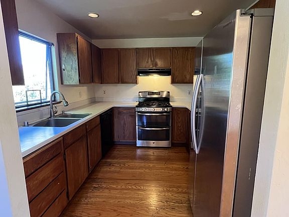 Charming architect designed home on a quiet street. Spacious & sunny with high ceilings, skylights, art nook, fireplace, and a lot of storage space. Tri-level with a private fenced backyard garden space. Driveway with off-street parking and an attached one car garage. Washer and dryer in the garage. Central heat. No cooling (house always stays cool). Both bathrooms have bath tubs. Living/dining room and kitchen with hardwood floor, 2 bed rooms with carpets, 3rd bedroom with tile and access to backyard. Walking distance to BART, Berkeley Downtown, Berkeley High School, and other great places. Yearly lease. Pets and family friendly. Please contact if you're interested. Share a little about you, your family or group, and what you're looking for. Thank you! Deposit is two months rent plus $150 per pet. No smoking allowed. Renter is responsible for all utilities.