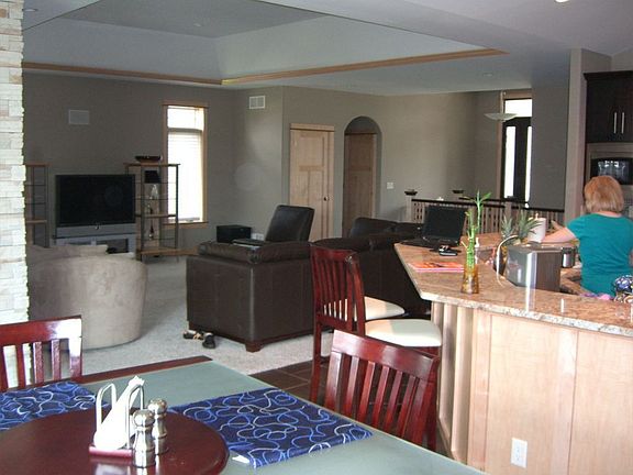 Gorgeous Contemporary Mission style 4254 sq/ft 4 bdrm Ranch! Beautiful wide open floor plan highlighted w/maple & cherry two trim & cabinets. Magnificent granite kitchen w/glass tiled backsplash & SS appliances. Great rm w/tray clg & 2-way stone f/p to Hearth rm! Formal dining (Office), Huge L/L fmly rm w/slate f/p & granite wetbar! Mstr suite w/luxurious bath w/tiled shower w/body sprays. 6 zone audio, sauna & hot tub, sprinkler system, real stone & stucco exterior & screen porch! VRP $529,900-$539,900