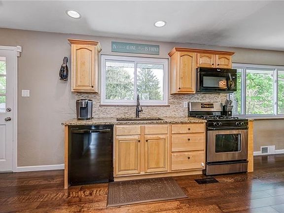 Beautiful solid brick updated ranch with circular drive on 1.1 stunning acres! Level front entry to the Foyer and the fabulous open floor plan with Kitchen, Living Room & Dining Room! Kitchen is a gourmet delight with granite counter tops, 3 pantries for storage, top of the line appliances, plenty of working counter space & large island with seating! Kitchen opens to spectacular Trex deck overlooking the fenced treed backyard! Bonus Room/Mud Room off Kitchen leads to the attached Garage. Ease of one level living with lower level Family Room, Bedroom, Full Bath, oversized laundry, & massive storage/desk area. Walk up a few stairs from the basement or walk down a few from the deck to the magnificent backyard! Gleaming swimming pool & entertaining area with new fencing for safety and recently manicured trees! Additional updates include roof, Hot Water Tank, Furnace, Air conditioner, pool heater and pump. Few minutes to parks, schools, shops and highways! This home is a dream!!