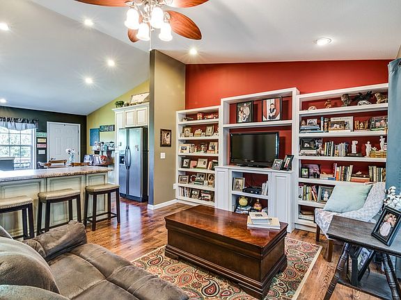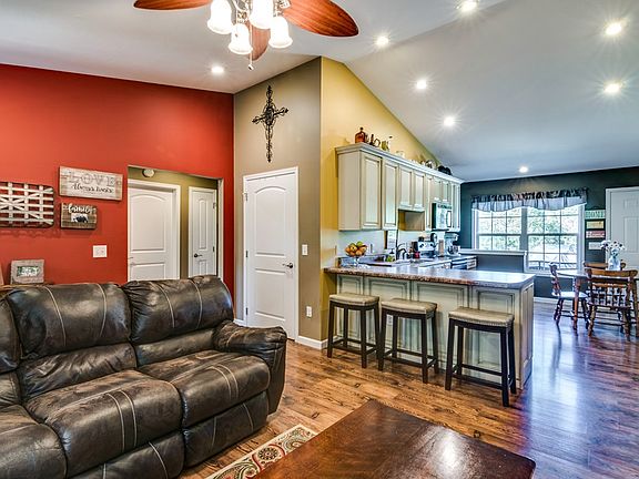 Charming cottage that is adorable and affordable!! Vaulted ceiling and built-ins in the open living room, huge kitchen with loads of beautiful cabinets, counter space, pantry, and stainless appliances that will remain with the home. Huge bedrooms and updated bathrooms! Large basement that is plumbed for a third bathroom, and offers tons of potential - 3rd bedroom could easily be added as well. Lots of storage! Large lot that backs up to farmland with garden space, fire pit, and room to roam for kids or pets! Location qualifies for 100% financing through Rural Development!