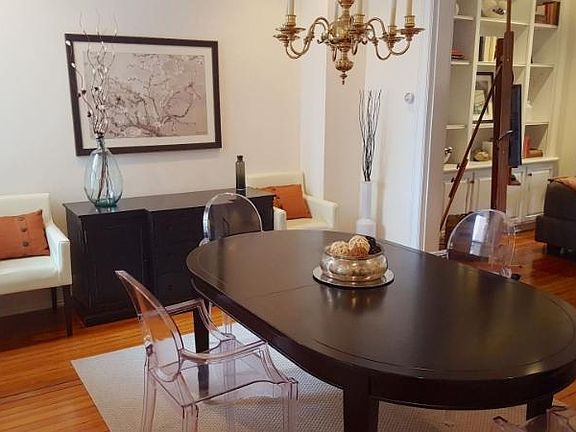 Property Id: 275710 This beautiful townhouse w/ parking included. The property is full of owner's original artwork, allowing for a relaxing and mesmerizing home! Enjoy the private outdoor patio and a short walk to metro (98 walk score!) This 1,200 sq ft townhouse has a fabulous warm, open feel on a tree-lined street in the heart of the Dupont Circle neighborhood! Enjoy the atmosphere of this unique DC home, which showcases original artwork, including a Parisian street scene mural in the master bedroom, a painting of jetties along the Pacific Ocean in the dining room, and an abstract piece entitled `Latent Ember` above the fireplace. The master bedroom has it's own ensuite, and comfortably sleeps two in the queen bed. The second bedroom includes two queen beds and its own private balcony. The couch in the living room has a removable back, and can comfortably sleep one individual. Hangers, clothing irons, and two hairdryers are available in the house. The kitchen is stocked with cookware.