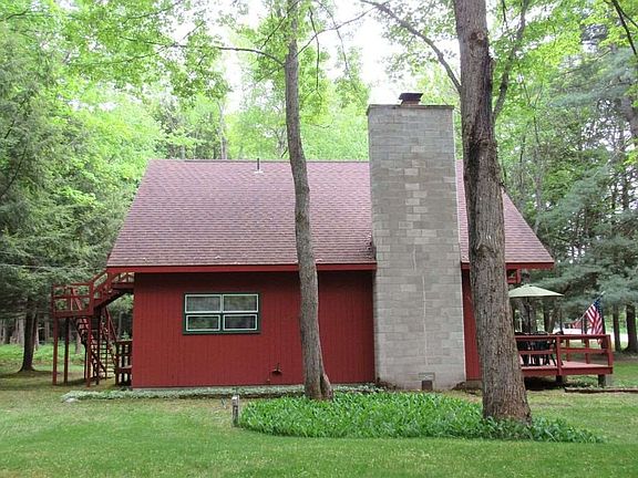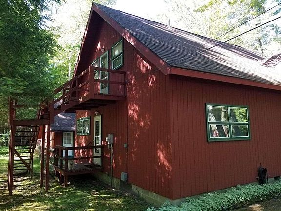 35'Private Shared Deeded Access to Lake Margrethe and boat slip at private access. Beautiful Chalet offers 1660 sq. ft. with 3 Bedrooms, 2 full baths. Beautiful full brick wall to wall fireplace with 9 foot cedar mantel. Cedar 4 X 6 square logs. Open floor plan to kitchen, living and dining area. 9' Cedar ceilings. Beautiful Spiral Staircase to upstairs level. Also includes exterior stairs to upper level. Berber Carpeting, Ceiling fans, Electric Heat. Natural gas available at road. Appliances included are stove, side by side refrigerator, dishwasher, built in microwave, washer and dryer. 2 car detached garage. Nice lawn and garden shed with cement floor. ** ATTENTION ALL Buyers attending a showing must sign SHOWING CERTIFICATION and RELEASE PRIOR to showings ** All attendees wear facial covering... make sure buyers avoid touching all surfaces...please remove shoes... once showing is complete, please sanitize all light switches, door handles, lock box, etc... and finish showing with extended conversation(s) outside.
