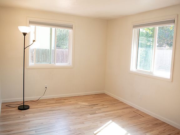 Welcome to this cute single family home on the west side of Fort Collins! The house features brand new hardwood floors, a new refrigerator, and air conditioning. The space is comfortable, and includes an open living room, a bright master bedroom and walk-in closet, and a second bedroom with a large closet. The detached garage includes a fully finished, heated room built into one corner that could serve as an office, workshop, or studio. The finished room is approximately 100 sq ft and the remaining unfinished garage is a spacious 500 sq ft, allowing for two vehicles or plenty of storage. The backyard includes a deck and gravel and stone patio for relaxing or entertaining. You'll be located just a few hundred yards from Rossborough Park, less than a mile from the city bike path system, and less than two miles from foothills trails and beautiful Spring Canyon Park. 12 month lease. Renter is responsible for all utilities. Up to two dogs allowed with pet deposit.