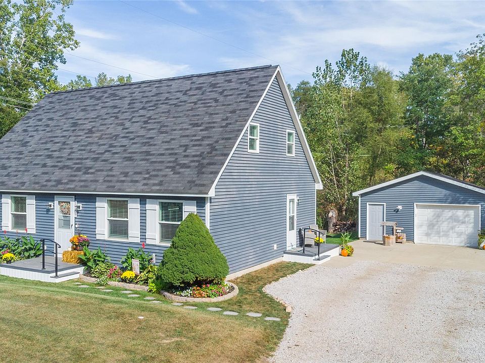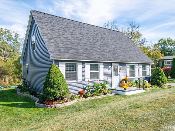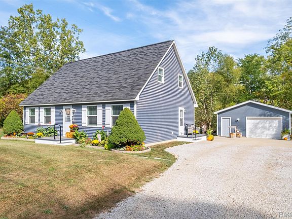 This beautiful Cape Cod home is located in Genoa Township and features Howell schools. Situated on 5 acres, the property offers excellent hunting land extending all the way back to the railroad tracks. The house includes 3 bedrooms, with a master suite on the first floor that features a private bath and closet. The other two bedrooms and a bathroom are located upstairs. Recent updates to the home include new paint, carpet, doors, and LED lighting throughout. The exterior boasts new deck rails, landscaping, and a new fire pit. The two-car detached garage has electricity and a new garage door opener. The boiler furnace was recently serviced and is in good condition, and both a portable AC unit and a window AC unit are included. All appliances shown are also included. The home features a clean and dry crawl space, and its secluded location offers privacy while remaining close to town and expressways.