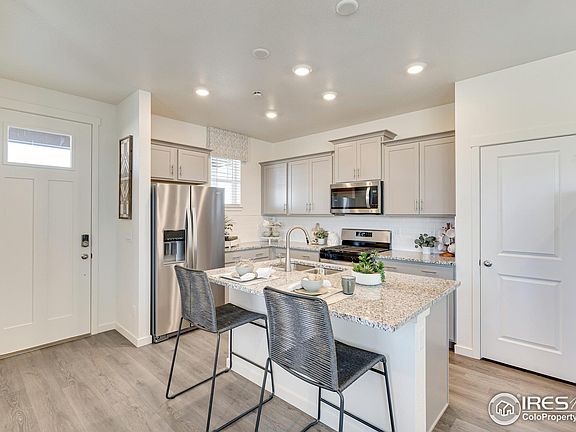 Introducing the stunning Muirfield floorplan, this 3 bedroom, 2.5 bath paired home with a loft space offers both style and functionality. Step through the welcoming front porch and into the spacious open-concept main floor, where the kitchen, dining, and living areas seamlessly flow together, perfect for gatherings of all kinds. The kitchen features a quartz island, classic cabinets, refrigerator, and a gas range. Upstairs, discover the loft providing a versatile space that separates the primary suite from the two guest rooms. Retreat to the luxurious primary suite, complete with an ensuite bath featuring double sinks and a walk-in closet. With the convenience of an upstairs laundry room, chores become effortless. Washer, dryer, and blinds also included. Enjoy the low-maintenance lifestyle with included landscaping, fencing, and modern amenities such as A/C, a tankless water heater, and a smart home package. Explore the community's walking trails and look forward to future access to the Power Trail, all while being conveniently located near shopping and recreational facilities. Don't miss your chance to experience the best of Fort Collins living at Hansen Farm Paired! ***Photos are representative and not of actual home***
