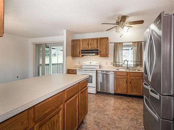 With nearly 1900 square feet, there is plenty of space to spread out! Main floor features living room with gas fireplace and custom desk, full bath, huge laundry room and lots of storage. Upstairs, you will find a large open family room, kitchen with newer stainless steel appliances and plenty of space in your cabinets and pantry. Large master suite, two additional bedrooms and another full bath complete the floor. Brand new carpet throughout! New Andersen door and windows throughout! Private backyard with awesome covered deck and new shed for additional storage. Two car oversized garage with huge storage closet. Refrigerator, custom computer desk, and security cameras and monitor can stay! HSA home warranty offered for extra peace of mind. Priced to move!