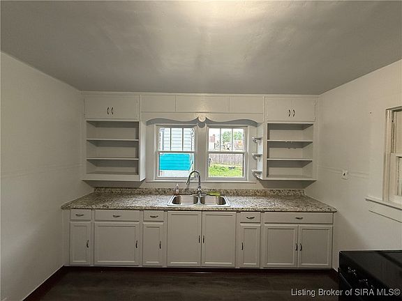 Great opportunity- 3 BR bungalow full of vintage charm and character! This 3-bedroom, 1- bath bungalow offers charm, space, and potential. Features include a formal dining area, eat-in kitchen, enclosed sunrooms in the front and back of the home, and a partially finished basement. The third bedroom is in the basement and does not have an egress window. There is a large family room in the basement and a shower that could be hooked up to plumbing that is already there. The basement also has a workshop area for work/hobbies. Ideal for first time home buyers or investors looking for a solid home with great bones and room to build equity. Located in the heart of New Albany it is in a fantastic location close to schools, shopping, restaurants and quick access to the interstate. The park-like backyard is including 2 extra lots behind the lot the house is on, and is huge with room to do all kinds of things with a total of over a half acre. Remodeled kitchen cabinets and countertop in 2025. First floor has new flooring - vinyl tile flooring. The first floor was painted in 2025. New water heater was installed in 2025. Don't miss out on this rare gem!! Sq ft & rm sz approx.