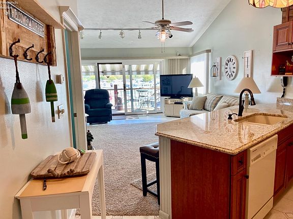Amazing Waterfront Fully Furnished 2 Bedroom/ 2 Bath End Unit Condo With Resort Style Living At Come Sail Away With A 40' Foot Dock Right Below. Open The Door To Walking Into Heaven With Panoramic Waterfront Views Out Every Window. Enjoy Million Dollar Sunrises Off Your Private Spacious Balcony With An Automated Awning. Being On The Top Floor You Can Enjoy Your Own Privacy, Amazing Breezes In A Serene Setting. This Spacious Open Concept With Cathedral Ceilings And A Remodeled Kitchen W/ Granite Countertops. So Many Amenities Come With Come Sail Away Which Includes An Amazing Heated Pool, Hot Tub, Bath House, Free Wifi, Electric And Water (at The Dock), Trash, Sewer And Snow Removal. Low Hoa Fees $744 Quarterly.detached Garage With Pull Down Storage In Attic W/ Electric And Shelves For $355k Total (gd 1) Across From Unit.**this Condo Can Be Rented With 5 Day Min. (current Owner Does Not Rent)*** Furnishings Remain With Home Excluding Staging Items And Personal Belongings.