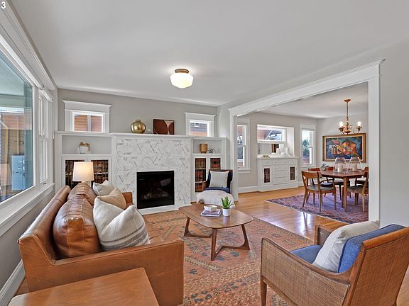 Stunning Craftsman in sought-after Grant Park! Thoughtful floorplan with 4 Bedrooms + Den / Office + Bonus. Down-to-the-studs, whole house remodel in 2019 featuring all NEW: roof, plumbing, electrical, upgraded insulation & smooth drywall, Marvin double hung wood windows, Schoolhouse & Rejuvenation lighting, forced-air gas furnace & AC, tankless water heater, double laundry rooms and so much more. Inviting Living Room features gas fireplace with exquisite calacatta marble tile surround and custom built-ins with original lead glass cabinet doors. Chef's Kitchen has slab quartz countertops, subway tile backsplash and BlueStar 36" 6-burner built-in gas range. Spacious primary bedroom with vaulted ceilings and double closets. Gorgeous upper-level bathroom features a honeycomb tile accent wall & 5' x 3' shower. Lower level offers large bonus room with office and powder bath. Professionally landscaped lot includes a bluestone paver patio, lush level lawns with sprinkler system, raised corten steel garden planters and garden bed with blueberry bushes and fresh herbs. 384 SF oversized, detached garage with 4-car driveway. Storage Galore. Top-rated schools: Beverly Cleary / Grant High. Easy access to parks/ shopping/dining. Walk/Bike Scores: 94/100. Incredible! [Home Energy Score = 6. HES Report at https://rpt.greenbuildingregistry.com/hes/OR10215509]