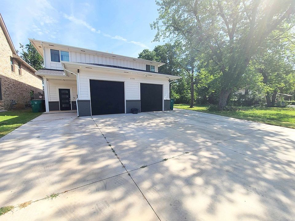 This well-designed duplex offers a bright, open layout with elevated finishes throughout. The main level features a spacious living area with vaulted ceilings and tall windows that allow for great natural light. The living space flows into a sizable dining arearoomy enough to comfortably fit a large tableideal for everyday use or entertaining. The kitchen delivers clean lines and excellent functionality, with a large center island, granite countertops, stainless steel appliances including a gas range and high-end refrigerator, abundant cabinetry, and a generous walk-in pantry. A downstairs half bath is conveniently located, along with a separate flex roomperfect for a home office or reading nook. All three bedrooms are upstairs, including a large primary suite with private bath featuring dual vanities, walk-in shower, granite surfaces, and an oversized closet. The two secondary bedrooms are both spacious and connected by a Jack-and-Jill bathroom, each with its own sink and modern finishes. Laundry area is upstairs and includes washer and dryer. Outside, enjoy a fully fenced backyard with covered patio for relaxing or entertaining. Additional highlights include an attached one-car garage with in-ground storm shelter and an extended driveway that provides ample parking for guests. Unit A is available now. Unit B will be ready the first or second week of September. Located just steps from the vibrant Plaza District, you'll have unbeatable access to shops, restaurants, and nightlife right outside your door. Schedule your private tour today!