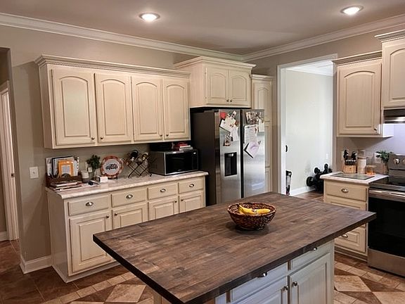 BEAUTIFUL HOME LOCATED JUST MINUTES FROM TOWN BUT HAS THE COUNTRY FEEL. THIS 3 BED/2BATH HOME HAS AN OPEN FLOOR PLAN WITH PLENTY SPACE, 9FT CEILINGS, CROWN MOLDING, AND STORAGE THROUGHOUT THE HOME. THE LIVING/DEN/DINING AREA HAS WOOD FLOORING AND PLENTY OF SPACE FOR SETTING UP THE PERFECT ROOM. THE MASTER BED/BATH SUITE HAS A WALK-IN CLOSET, TUB, SEPARATE SHOWER, AND ACCESS TO AN OUTSIDE DECK. THE TWO GUEST BEDROOMS SHARE A FULL BATH AND THE LARGER ROOM HAS A VERY LARGE CLOSET FOR CLOTHING AND STORAGE. THE KITCHEN/BREAKFAST AREA HAS BEEN REMODELED WITH NEW CABINETS, BUTCHER BLOCK ISLAND, BREAKFAST AREA, CERAMIC TILE FLOORING AND MUCH MORE. THE HOME ALSO HAS A LARGE FOYER, MUDD ROOM, AND LAUNDRY ROOM. THERE IS A WRAP AROUND DECK ON ONE SIDE AND THE BACK OF THE HOUSE. THERE IS ALSO A LARGE CONCRETE AREA THAT WOULD BE PERFECT FOR AN OUTDOOR STORAGE BUILDING. PLEASE CALL AND SET UP AN APPOINTMENT TO SEE TODAY!