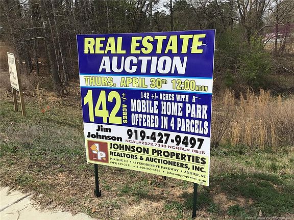 The price listed is for MLS purposes only. The property will be offered at public auction on August 20, 2020 at 12 Noon (Live & Online Simulcast). Live auction will be held at 119 JDE St, Spring Lake. 142 acres (4 parcels) that includes a mobile home park consisting of 12 spaces. This property has access to water and sewer and the vast majority is presently zoned RA-20M giving it a multitude of options for the serious investor! You can make an offer pre-auction on this tract if you are interested.