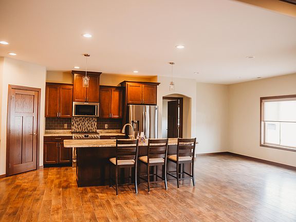Luxurious One Level Living! Quality Construction and Stately Finishes situated on private half acre lot. Upscale Floor Plan with Open Concept Living/Dining Areas with Stacked Stone Gas Fireplace and Treyed Ceiling. Kitchen with 10' Granite Topped Island, and 4'x4' Pantry. 17'x15' Master Suite with Granite Topped Double Vanity, Onyx Walk In Shower, Jetted Tub, Duraceramic Flooring, and 9x5 Walk in Closet. Secondary Suite with direct access to Full Guest Bath and Walk in Closet. 3 Panel Solid Oak Doors, Oak Trim, Maple Cabinetry and Granite Topped Vanities in all Secondary Baths/Laundry. No details missed with 30x12 storage and dedicated tornado shelter. 3 Stall Attached Garage heated with floor drain and H/C water. Summer nights await with on demand fire pit and decorative Patio!