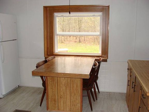 Very private!!!5.25 acres of woods. The home has 3 bedrooms,many updates and deer!!!!!!!The windows have been replaced with vinyl double hung windows,complete new bathroom and all new floorcoverings.The trailer has a rubber roof and all new doors throughout.Land contract available with $20000 down.Appliances are all included. The survey was completed in 2014.