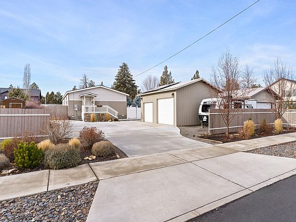 Discover the perfect blend of comfort and functionality in this Energy Star-certified home in SW Redmond. Built in 2020 on a private 0.24-acre lot, this 1,620 sq ft residence boasts 3 bedrooms and 2 bathrooms, with a thoughtful layout separating the primary suite from the guest bedrooms. The kitchen features alder cabinetry, an island, and a walk-in pantry, connecting seamlessly to the open living spaces. Natural light floods the interior, highlighting solid surface flooring throughout much of the home. Outside, enjoy a fully fenced, landscaped yard with a 9-zone irrigation system, stamped concrete pathways, and a gazebo-covered patio. A solar array boosts energy efficiency, while the detached 24' x 20' garage/shop, insulated 8' x 16' garden shed, RV parking, and a large concrete pad provide exceptional functionality and storage. Located in a peaceful neighborhood with no HOA, this property is ideally situated near Redmond's Dry Canyon, schools, shopping, and dining options.