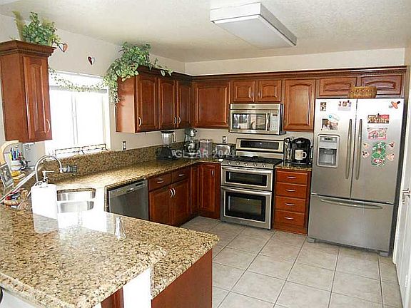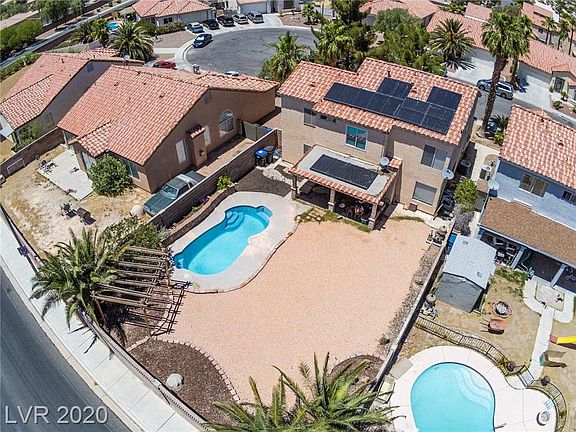 Lovely maintained home at end of cul de sac. New carpet/paint, laminate wood floor. Granite and stainless kitchen. Upgraded bathroom counters, fixtures/toilets. HUGE lot with beautiful landscaping, covered patio with decorative rock pillars and gorgeous easy to care for POOL! Extremely low HOA! Conveniently located to nearby shopping, restaurants, hospital, freeways and easy access to Nellis AFB. Ask your agent to view the 3D tour now!
