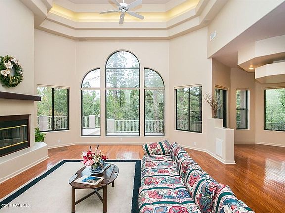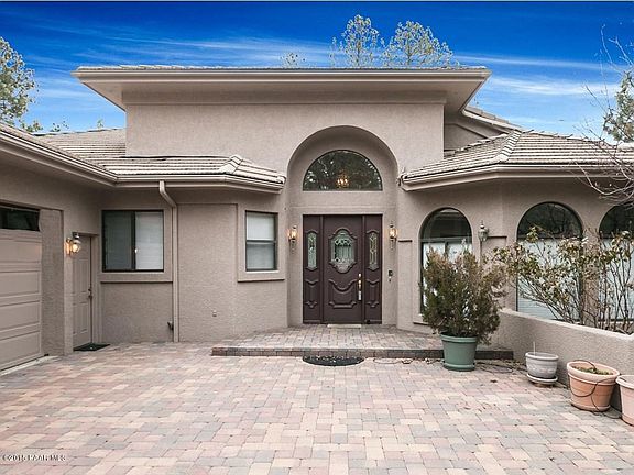 Spacious Custom Home with tons of light , towering ceilings and a grand entry. Surrounded by Pines and privacy just minutes from town. Wonderful Open Living area, chef's kitchen and formal dining room for entertaining lots of guests or having intimate dinners. Master suite is large with, fireplace, steam shower and spa / Jacuzzi room. Additional suite on the main level. Party on the huge private deck and patio area or in the recreation room. The privacy and location of the home is second to none. Full in law suite on lower level. Just a stones throw from Prescott Racquet Club. Don't pay for a gym, design your own exercise room in this home! So many more features to experience.