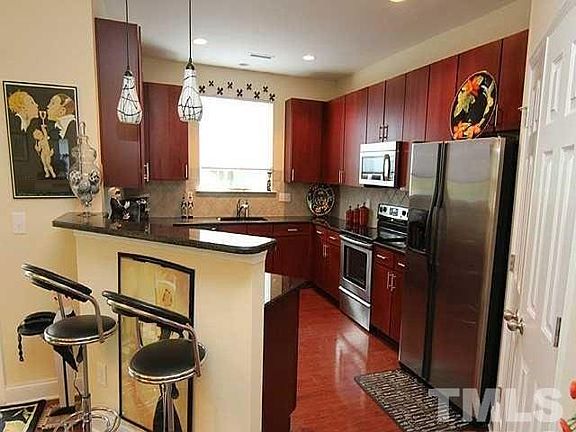 Beautiful End Unit Brick Townhouse offers 4 Bedrooms, 2.5 Baths! Gourmet kitchen with granite counter tops, stainless appliances, 42" cabinetry. Other nice features include the private screened porch, upstairs laundry room and a one-car garage. Near shopping, restaurants, RTP, 55, 540 and great schools. Community has fantastic pools w/ slide, gym, indoor basketball court, clubhouse & playground! Lease ends July 31, 2020.