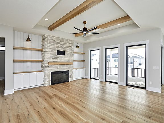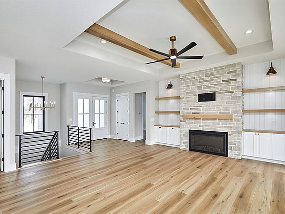 Another dreamy home from Dreamland Homes! Beautiful new ranch home on walkout lot with over 3,400sf of high-quality finishes. This superior 5 bed, 3 full-bath home includes fantastic 10ft ceilings and 8ft interior doors on the main with floor-to-ceiling windows across multiple rooms. Enter through the double glass entry doors to premium LVP flooring, trayed ceilings with stained beams and beautiful trim work. The main floor has a large great room filled with natural light; kitchen with 10ft island, lots of cabinets, quartz countertops, and pantry with built-ins and an access door to the garage! Dining area with door to a maintenance-free covered deck. The light-filled primary bedroom is a true get-a-way with a double vanity en suite that includes a tiled shower, soaker tub, private toilet room, and closet with custom built-ins. The main floor also includes two additional bedrooms, double-vanity bath, laundry room with service sink, and drop zone. The lower level doesn't disappoint! Large great room with a fireplace and superior windows for tons of light; wet bar, 2 bedrooms, and a double-vanity bath. Walkout to both your covered and uncovered patio! 3-car garage with h/c water. A truly impressive home. All information obtained from Seller and public records.