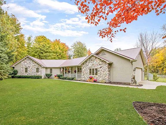 This fabulous home has all the updates and privacy you are looking for. It features 2 full master suites and 3 additional bedrooms. The spacious kitchen has all the storage you will need with the butlers pantry. Stainless steal appliances with a double oven. Granite counter tops and tile floors. The large living room has a wood burning fireplace with hardwood floors. Newer furnace, AC unit and new metal roof. This all sits on 5 acres and a fenced yard. Pole barn is 28 x 24 with a concrete floor.