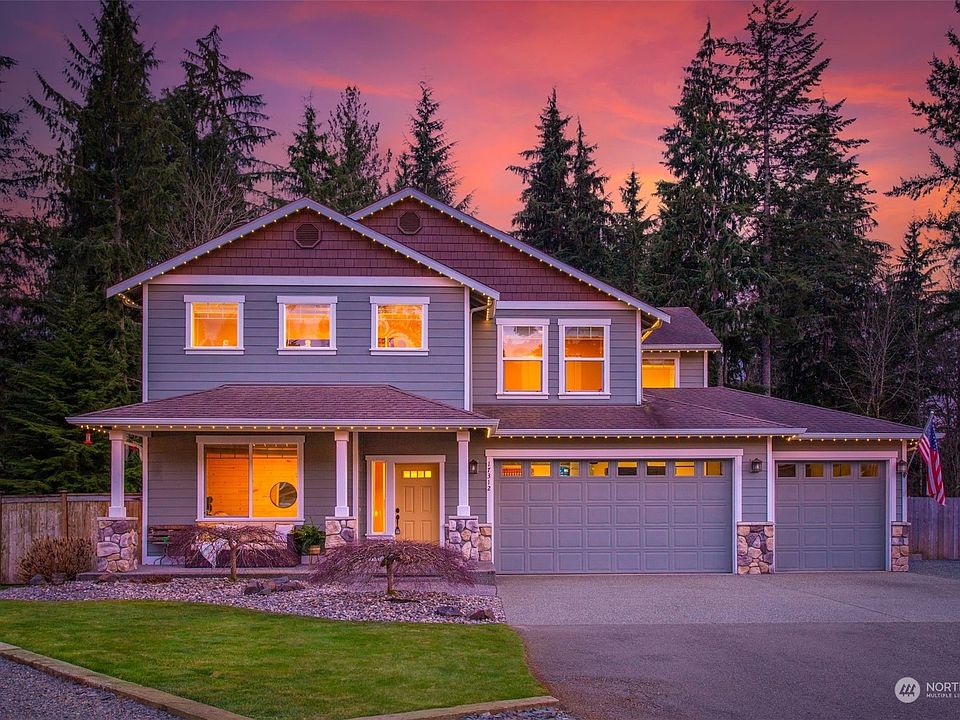 Nestled on a quiet half-acre lot in the desirable Holly Creek neighborhood, this property invites you to experience unrivaled tranquility! This expertly-maintained home has a layout perfect & impressive essentials throughout; an open-concept kitchen, smartphone-controlled permanent Christmas lights, RV/boat parking, a deep three-car garage & more. Spend time in the serenity & peacefulness of your outdoor living space/expansive covered patio. The oversized primary bedroom boasts a walk-in closet & luxurious ensuite. Three more bedrooms, office/den, & a guest space near a ¾ bathroom. Holly Creek is a private, tight-knit, gated community surrounded by thirty acres of lush protected growth & is moments away from some of the best the PNW offers!