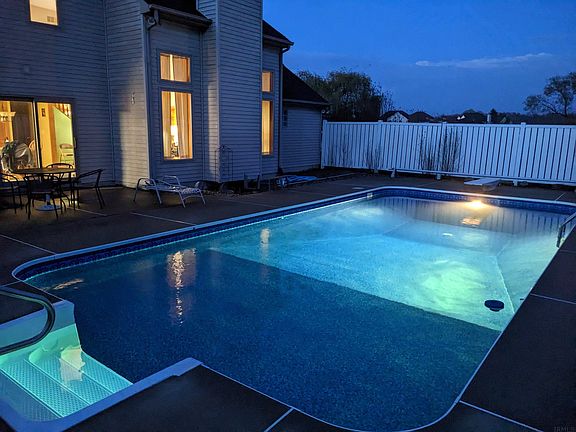*USDA 100% financing available with up to $10,000 in seller paid concessions! *Welcome to this stunning 4 Bedroom & 2 1/2 Bath two-story home nestled in a peaceful cul-de-sac within the prestigious Leo Schools district that has your very own INGROUND POOL!!! *Built in 2000, this 2335 sq. ft. home boasts exceptional features and thoughtful design. *Soaring ceilings greet you as you enter the home with great sight lines through the Great Room to the backyard paradise. *The formal dining to the right off the foyer makes a great office space with a massive window facing the front yard. *The brick hearth fireplace adds warmth and charm to the living area, creating a cozy ambiance. *The main floor master suite is a private oasis, complete with a 2-person whirlpool tub, dual vanities, a walk-in closet, and a vaulted ceiling overhead. *Enjoy outdoor living at its best with an inviting inground pool, a spacious patio and a vinyl privacy fence, creating a serene and secluded atmosphere for relaxation and entertainment. *The pool liner, heater and pump have been updated as well. *Upstairs has an oversized loft area with 3 good sized Bedrooms that share a full bath. *The 3-car garage offers plenty of storage and workspace for the discerning homeowner. *Beautiful landscaping planted around the pool area with rose of sharon bushes that bloom during the pool season and a side view of the massive pond. *Don't miss the opportunity to make this remarkable property your own!
