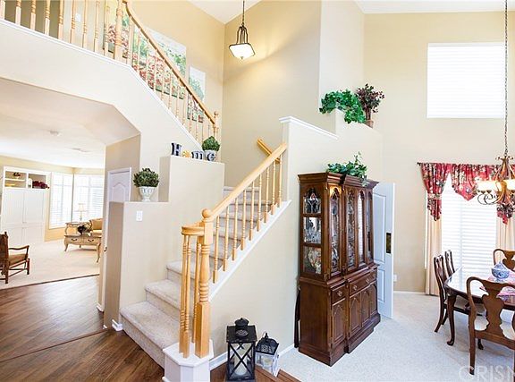 Model perfect, 2 story, 4 bedroom + 3 bath + loft, 2,596 sq. ft. home with a 3 car garage in the Coradine tract. This beautiful home has a spectacular open floor plan, and everything a family could ask for. There is a formal living room, formal dining room, a downstairs bedroom and full bath, vaulted ceilings, plenty of light from the many windows with views to the outside, a kitchen with granite counter tops, center island, tile backsplash, lots of storage, white appliances, a double oven, a microwave and heavy duty luxury vinyl wood look tile floors. the kitchen overlooks a large great room with carpeted floors, a fireplace, plantation shutters, and a built in enclosed media niche for your tv and audio components. There is also a downstairs bedroom, and an inside laundry room that leads to the 3 car garage (3rd car bay is currently used as a bonus room/ hobby room/office). Upstairs is a very nice loft with built in cabinets for all your storage or home office needs, and 3 good sized bedrooms including a master bedroom suite with walk in closet, and large windows looking into the green landscaped backyard. The master bathroom features dual sinks w/tile counter tops, and a separate tub/shower enclosure and tile floors. Located minutes from shopping, and freeway close for commuters, this lovely home will surely impress.