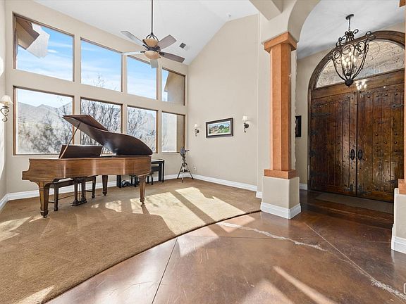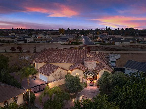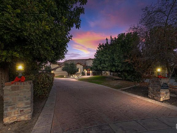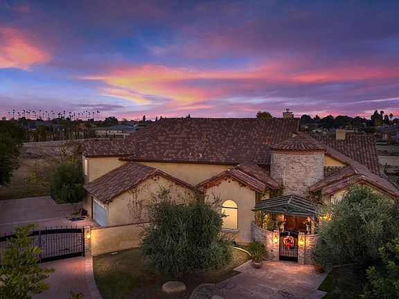 Nestled quietly at the end of a cu-de-sac, sitting on over an acre land you'll find this gorgeous 5000 square foot, 5-bedroom, 5-bathroom, Mediterranean style home. A private courtyard entrance, trellised with fruit bearing grape vines and fountain leads you inside to a very open floorplan with vaulted ceilings. Formal living, formal dining, game room, office, walk in temperature-controlled wine room, small bar with beverage fridge and barstools, family room has floor to ceiling brick fireplace, built in entertainment center. The kitchen is an inspiring chef's dream, with a Jade chef stove, Wolf double oven, Subzero fridge, beverage fridge, trash compactor, large granite island with double sinks, custom backsplash with pot-filler. Split-wing floorplan, central vac, amazing primary bedroom with gorgeous bathroom, jetted tub, dual vanities, a large walk-in closet. Then there are the entertainers' dream yard! Full outdoor kitchen, full size basketball court, pool/spa and 3 car garage!