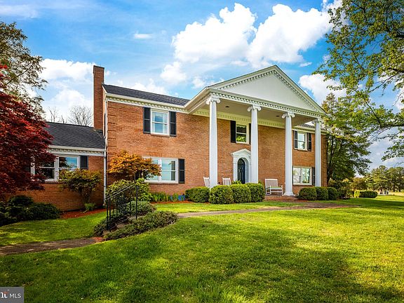 Enjoy the best of private country living within minutes of town, right across the street from Morven Park, at this exquisite 6-bedroom Colonial estate! Sprawled on 10 beautiful acres, complete with a swimming pool and stocked pond, detached garage, a brand-new roof and more, this property boasts exceptional space and amenities—all just a short drive to downtown Leesburg, with views of downtown from the front of the home! Location, location, location! Regal columns greet you as you arrive down the extensive drive and lawns. Inside, you are welcomed into a dramatic entry foyer, joined by a dedicated work-from-home office with wood paneling and doors believed to come from an old hotel in DC. Rich hardwood floors add warmth and character to the space, while the chef’s kitchen with island and stainless-steel appliances leaves nothing to be desired by the modern chef and entertainer. A lovely, windowed dining area is the ideal spot for enjoying a morning coffee or tea while gazing over the expansive grounds. The living room hosts a fireplace, perfect for cozy evenings with loved ones. Upstairs, the large primary suite creates a peaceful oasis with its calm ambiance and spacious layout, luxurious en-suite bath and handy laundry chute to the basement laundry. Five additional bedrooms offer ample space for guests or family. Adorned in Travertine flooring, the lower level includes a living area, bedroom and full bath, giving flexible options for guests or multi-generational living. Move outside to relax on the back patio, or take a dip in the in-ground pool installed 6 years ago. The stocked pond on the property offers a serene spot for fishing or simply enjoying the idyllic surroundings. For the equestrian enthusiasts, the detached garage offers the possibility of a three horse stalls below and a hay loft above. There is even a chicken coop that will convey with the property. This stunning home is just minutes away from Historic Downtown Leesburg, amazing vineyards and breweries, local schools, and a world of diverse shopping and dining. Truly one-of-a-kind, this special property unlocks a sought-after lifestyle.