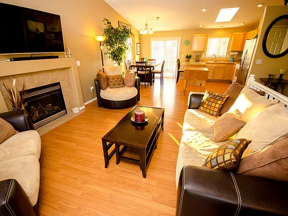 Well Maintained split level w/4 bds 2.75 bths 2000+ sq ft. Upstairs has an open flow floor plan, kitchen w/eating bar, baywindows, vaulted ceilings, gas fireplace, territorial view off dining rm & back porch. Master also has vaulted ceilings, full bth & walk-in closet. Downstairs boasts 2nd living rm, larger bedroom & 3/4 bathroom w/washer & dryer. Neutral paint tones, laminate flooring. Driveway has been expanded to fit 3 cars w/concrete pathway to fenced back yard. Hot tub hook ups installed.