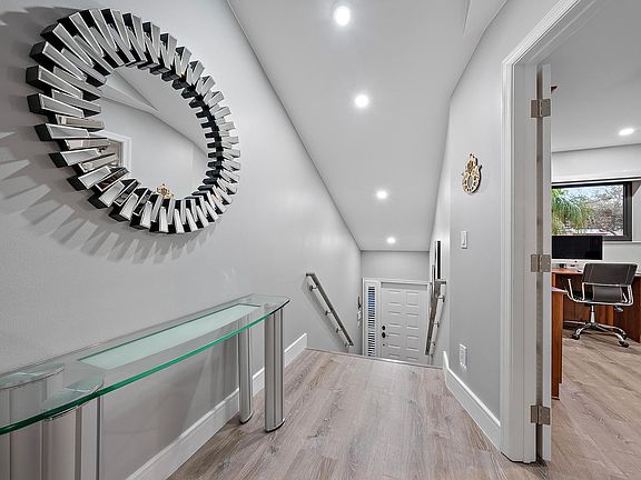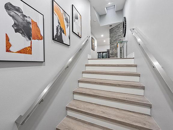 The kitchen is equipped with Bosch stainless steel appliances, sleek cabinetry, and modern finishes perfect for any home chef. A new hot water heater (2024) and an AC unit approximately 6 years old ensure comfort and reliability. The home's thoughtful design includes a built-in desk with shelves and custom closet in the office, ideal for organization and work-from-home needs as well as custom shelving in all additional closets throughout the home. Custom remote-controlled blinds in all rooms, Hunter Douglas blinds in the office and pull-down shades in the living room add convenience and elegance. Recessed LED lighting throughout the home as well as custom high-end light fixtures provide a bright, contemporary ambiance, while a custom stainless steel railing adds architectural charm.