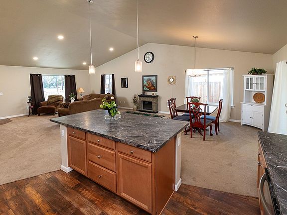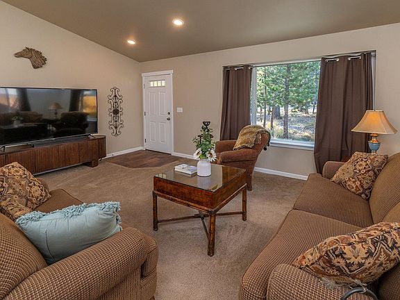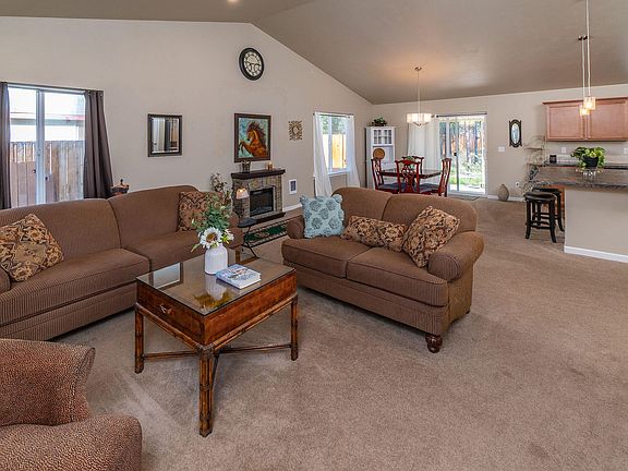 This single story home features a spacious open great room with vaulted ceilings that create an inviting atmosphere. the kitchen includes a large island perfect for meal preparations and entertaining guest a fenced backyard offers privacy, while residents enjoy access to a private community marina along the Dechutes River,ideal for various outdoor activities Situated on a half acre lot the property provides ample space for relaxation and recreation The primary suite boasts a generous walk in closet this home has been lightly lived in ensuring a well maintained and welcoming environment