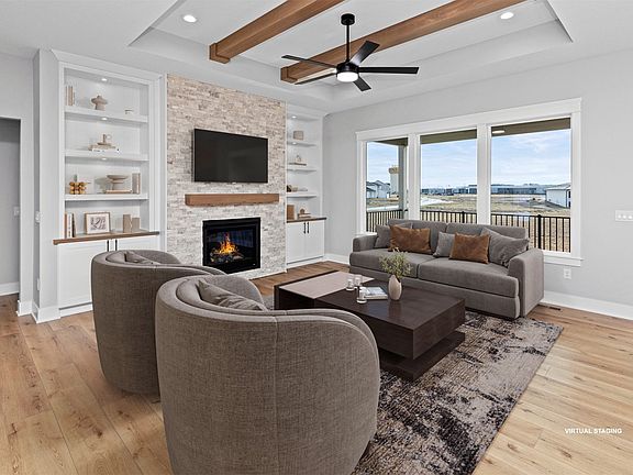 Fabulous New Walkout Ranch with 4 CAR Garage by DAN Homes with quality and stylish finishes in prime location, Bentley Ridge. Over 3600sf of finished living space, home features 5 beds/3 baths, & backs to park! Main floor premium LVP throughout, 10' ceiling in entry, family rm, kitchen & dining area. Inviting family rm with tray ceiling, & stunning fireplace. Open to large kitchen with quartz counters and backsplash, under cab lighting, soft close cabinets, SS appls, walk-in pantry with grocery pass through from the garage, island, and a dining area that leads to a 17 x 12 maint-free covered deck. Primary bedrm with tray ceiling, walk-in closet, ensuite bath with soaking tub, tile shower & dual vanity. Two more bedrms, full bath, mudrm, and laundry rm complete the main. Finished walkout lower level includes 2nd family room, 2nd fireplace, wet bar, two additional bedrms, full bath, and plenty of storage. Walkout to covered patio & backyard. 4-car garage insulated with insulated garage doors & quite belt drive openers, irrigation, custom closets, solid core doors, & casement windows. All information obtained from Seller and public records.