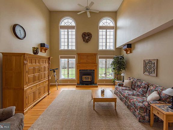 All brick colonial is perfectly set on a private 4.7+ acre lot! Formal living & dining rooms open to expansive 2-story great room w/gasFP. KIT w/42" cabinets, granite & breakfast room. Sunroom steps to Bluestone patios w/views of open backyard, orchards & gardens! Guest room w/private bath, owner's suite w/sitting room, WIC & jetted tub. Finished LL w/NEW carpet in rec room, bonus & playroom.