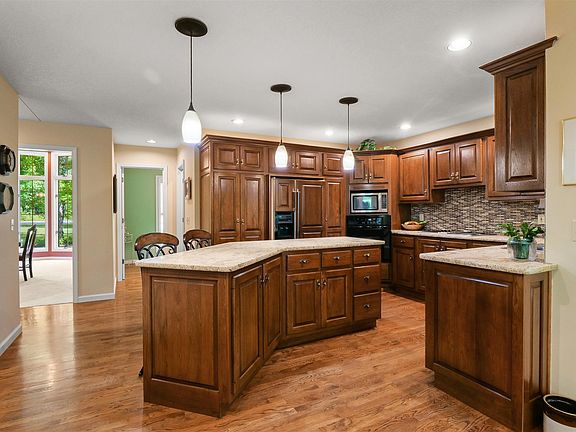 Quality, owner pride, mint condition home in Leo Schools. Over 4000 square feet Situated on a private drive in a quiet natural setting surrounded by over 2.5 acres of land. Whatever your wish is for next home this home is it. The outbuilding can function as your toy garage, workroom or potentially a recreation space with room for a golf simulator. Inside features Granite countertops throughout, ceramic tile shower in the master, white custom wood trim, geothermal, two fireplaces, built ins and more. The entertaining spaces are endless from the kitchen island to the game room and two story deck, you may not want to tell your friends you live here because they may never leave. Welcome to your forever home!