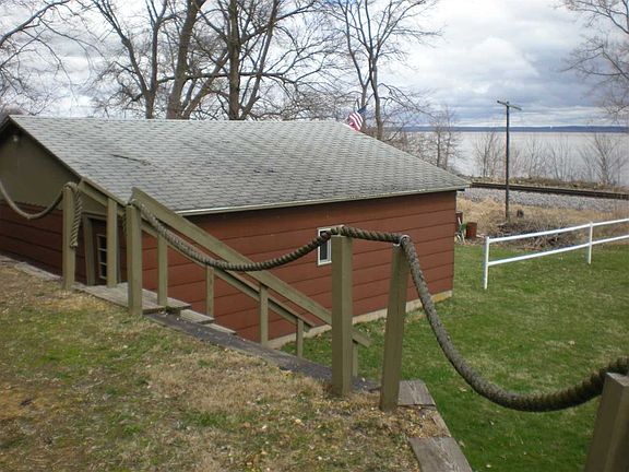 Beautiful river views from every room in this completely restored 1905 farmhouse located on almost 1 acre of land. Great weekend getaway or full time home. Wood stairs to the waters edge for your private dock or there is a public boat launch to the north of the property. This home features 3 bedrooms with 1 having laundry hookups if a second floor laundry is desired. 2.5 baths, gorgeous 4 season porch for enjoying your morning coffee or evening cocktail. 2 car garage on the lower tier of lot with a large storage shed next to the house. Current seller has put on a metal roof and run all new ductwork for the new furnace. 3 A/C units will be included. There is not a conventional septic tank and field, there is a holding tank.