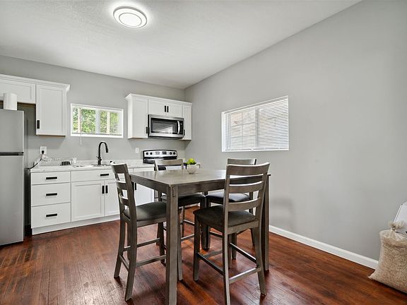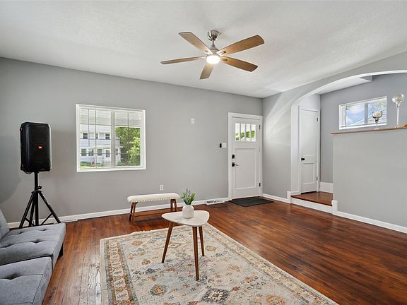 This charming home features 2 bedrooms, 1.5 baths, and hardwood floors throughout. With freshly painted walls and newer drywall, it exudes a modern and inviting atmosphere. Outside, the new siding and beautiful light fixtures enhance its curb appeal. Inside, the newer kitchen boasts modern appliances and the updated electrical panel ensures safety. Other upgrades include newer windows, a new water heater, furnace, and AC unit. Parking is convenient with front and back spaces, along with a detached garage for added storage.