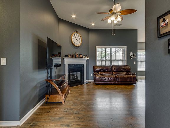Brick ranch home in a lovely community! Three bedrooms and 2 bathrooms with no carpet and no stairs*Covered back patio and fenced backyard*HOA maintains lawn for you*2 car garage*Master suite with a nook for office or flex space*High Ceilings*Gas Fireplace*New Laminate Floors*Kitchen appliances remain*Check out 3D tour link in Media.