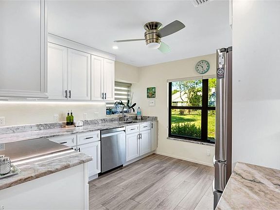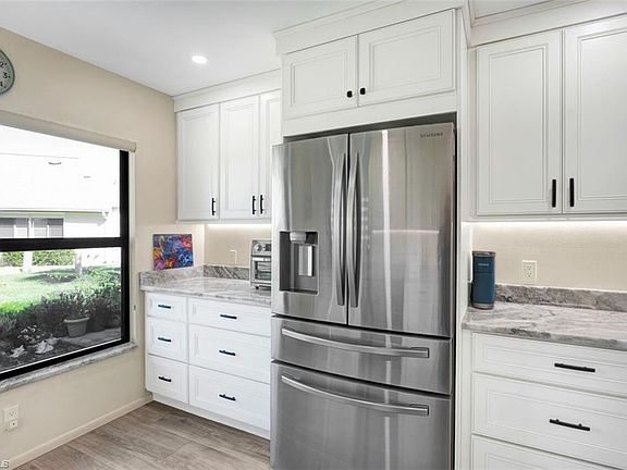 Welcome to this Elegant Recently Remodeled and Spacious 3 Bedroom, 2 Bath "Biscayne" Garden Villa. 1600 SQ FT plus, offered in the Seven Lakes Golf & Tennis Community! Offered Furnished and includes Golf Cart Space #17 and Newer Golf Cart. All Interior Renovations Completed May 2022. Hurricane Windows and Patio Sliders installed September 2022. Beautiful Roll Down Window Blinds. $20K High Efficiency AC System with UV Light and Air Purifier installed May 2024. Hot Water Heater installed October 2023. Electrical Box installed May 2022. Kitchen is Light & Bright with Quartz Counter Tops, Soft Close Cabinets and Stainless Steel Appliances. Recessed Lights and Flat Ceilings Throughout. Updated Walk-in Tile showers and Tall Vanities. Newer Tile Flooring Throughout. Newer Full Size Washer & Dryer. Garage Features an Electronic Garage Door Screen and Epoxy Floor. New Roof. All Assessments are paid. Seven Lakes is a Bundled Golf Community! Recently renovated Executive Golf Course. This Active Adult 55+ Community offers 6 Heated Pools, 6 Har-Tru Tennis Courts, Shuffleboard, Bocce ball, Pickleball, Library Card rooms, Exercise room, Billiards, Wood Shop, Hobbies, Crafts, Cards, Restaurant, Full Time Recreational Area with Dinners, Movies and Dancing Events. Pet Friendly (1 pet under 25 lbs.) 24 hour manned guard gate. The HOA Condo Fee includes Bundled Golf, Internet Wi-Fi, Cable, Water, Sewer, Structure Insurance, Trash & Building Maintenance. You only pay for Electricity! NO Golf Transfer fees, NO Golf Green Fees and NO Food Minimum in the restaurant. Centrally located for Dining, Shopping & Beaches! Enjoy Paradise now!
