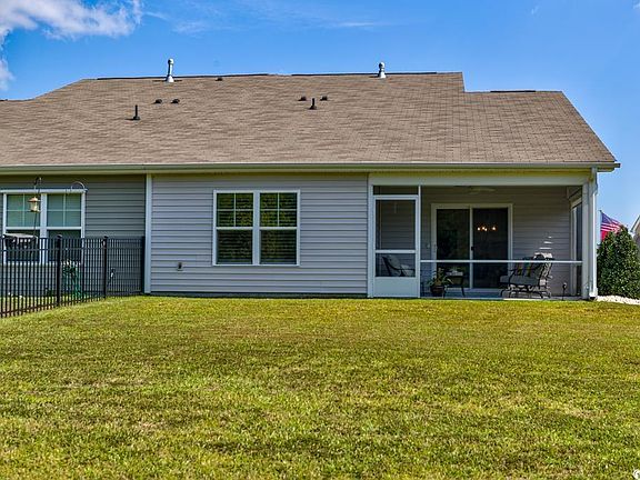 Recently reduced! Priced to sell! Pride in ownership shows throughout this immaculate 3-bedroom, 2-full bathroom ranch style home with an attached 2-car garage that is beautifully positioned on one of the few available PREMIUM POND LOTS located in The Townes at The Parks, a highly sought-after community in Carolina Forest. From the moment you walk through the front door, you will be impressed by the many custom upgrades and features this home has to offer. The beautiful custom shutters added to all the windows throughout the home provide a warm, elegant, and cozy feel. The Mid-Atlantic hurricane security film covering all the windows will give you some extra peace of mind during our stormy season. The open floor plan and vaulted ceilings make this home feel extra spacious and bright. The well-appointed kitchen features granite counter tops, a large center island, stainless steel appliances, a gas stove, and a modern custom coffee bar with upgraded cabinetry, including glass panel fronts and a bottom light rail. A good-sized pantry and 36-inch cabinets provide plenty of space for storage. The lovely dining room with a tastefully upgraded chandelier flows seamlessly into the adjoining living room area. The enclosed screen patio features beautiful epoxy flooring and a custom-designed shade. The private and serene backyard overlooks a large, beautiful pond with glimpses of wildlife. It is the perfect place to enjoy your morning coffee or just relax. The spacious primary suite offers a large walk-in closet and a luxurious en-suite bathroom featuring double sinks and a walk-in shower. A true oasis! The additional two bedrooms are located on the opposite side of the home. This wonderful split-bedroom floor plan allows plenty of privacy for you and your guests. The “not your average garage” has durable Garage King epoxy flooring (21-year warranty), added molding, and painted walls. This well-maintained, updated garage can easily be made into extra living space or used for storage. The options are yours! Additionally, the home features a well-maintained, landscaped yard that is maintained and included in the HOA fees. The home is equipped with a tankless water heater, a separate laundry room with custom shelving, LVP flooring throughout, ceiling fans, an irrigation system, and a smart home system! The Parks is a resort-style community with an abundance of amenities, including a large resort-style pool, a lazy river, a hot tub, a fitness center, a clubhouse, a firepit area, and a playground. The Townes at The Parks is conveniently located near shopping, restaurants, HWY 31,17, International Drive, and only minutes to the beach. Don’t miss out on this gem! A must-see! Book your showing today!