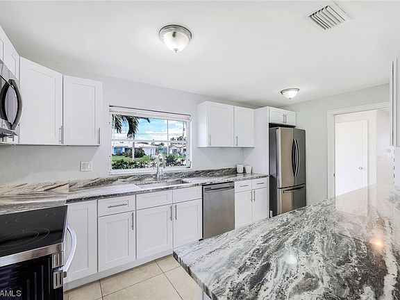 HUGE PRICE DROP! Motivated Seller! Seller is also listing house for rent so buy it before we find a tenant! FABULOUS HOME WITH BRAND NEW KITCHEN JUST OFF OF DEL PRADO IN THE CORNWALLIS NEIGHBORHOOD. This great 3 bedroom, 2 bath house has 1658 sqft with the enclosed rear room. It has been freshly painted inside and out. The brand new kitchen has soft close, white shaker cabinetry, granite countertops and brand new stainless steel appliances. No carpet in this house! Tile in the main living area and new LVP flooring in the bedrooms. This split floor plan offers a large master bedroom with a walk in closet and private bathroom with a new vanity. New outlets and light switches, new recessed lighting in the bathrooms and new fans/lights in bedrooms and Florida room. The new landscaping on this southern exposure, corner lot gives the home great curb appeal. You'll enjoy the view of the canal while gathering with family and friends in the large, private fenced-in yard which has plenty of room for a pool. Roof replaced in 2017. Central water and sewer and ALL ASSESSMENTS PAID! Easy to show! Cornwallis is a well-established neighborhood with beautiful homes all around. This is a great location in Cape Coral and close to shopping, restaurants, downtown Cape Coral and great schools. Call today for your private showing.