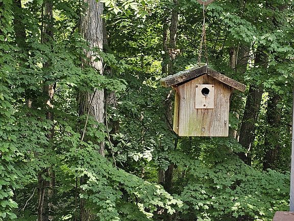 Cozy gas fireplaceAntique fireplace mantelHuge deckTranquil escapeScreened in porchViews of the woodsFrench doors