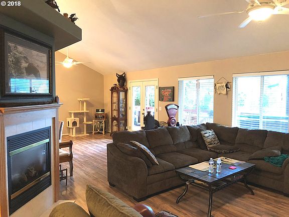 Beautiful house with amazing yard, high chain link fencing, gorgeous plants & trees, RV parking and oversized garage. High vaulted ceilings, gas fireplace, laminate floors and French doors to covered patio complete with hot tub and a hookup for gas grill. Beautiful kitchen with oak cabinets. Range, fridge & microwave all less than 2 years old. Excellent location on quite street, lots of wildlife and a serene neighborhood.