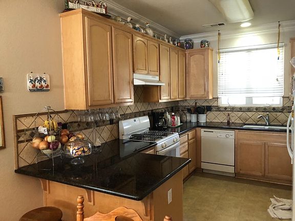 Perfect home for the first time home buyer!! 2 bed/2 bath 1234 sqft. Nice open floor plan with large crown molding!! Granite counters and beautiful back splash in kitchen. Oversized walk-in shower, large walk-in closets. Backyard features patio cover, outside BBQ area with granite bar, and stone patio!